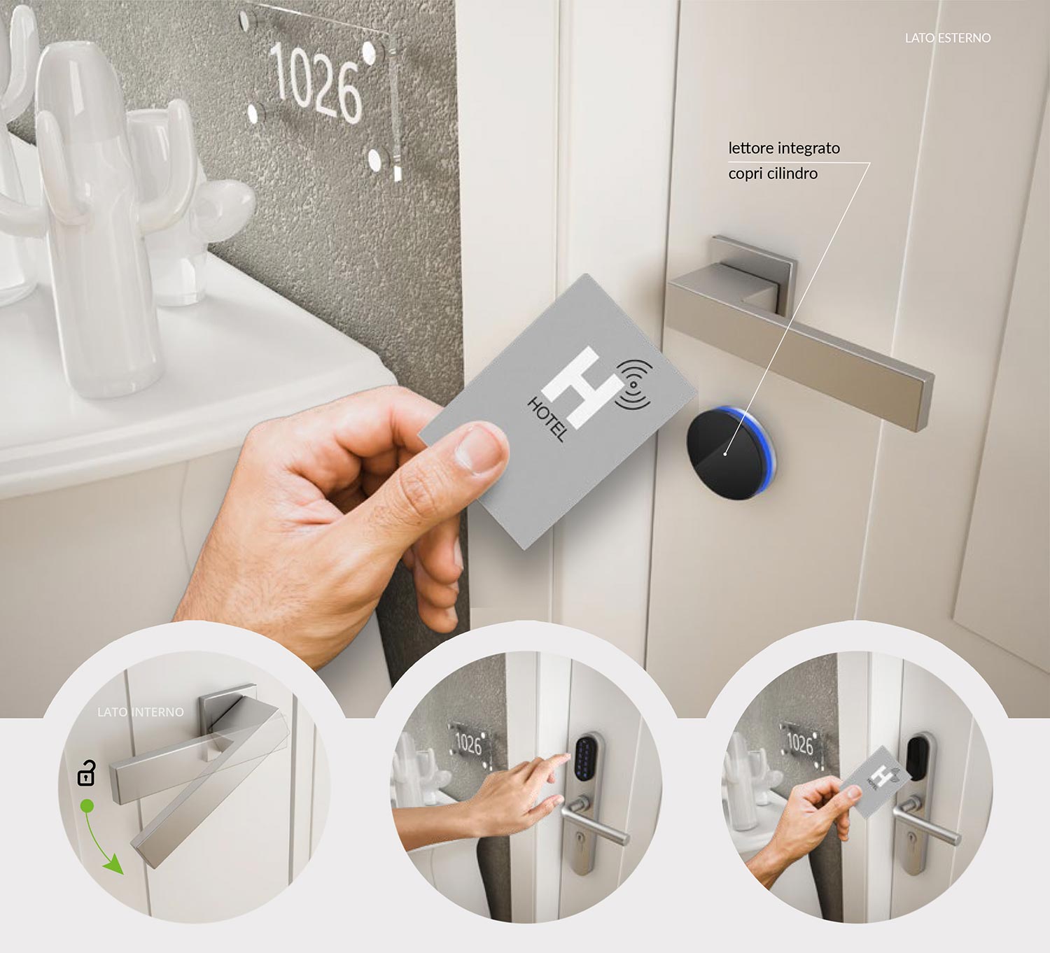 A completare il sistema c’è Domia, la piattaforma cloud per gestire accessi, camere e check-in da qualsiasi dispositivo, con integrazione dell’app ospiti O.Key per l’apertura tramite smartphone.